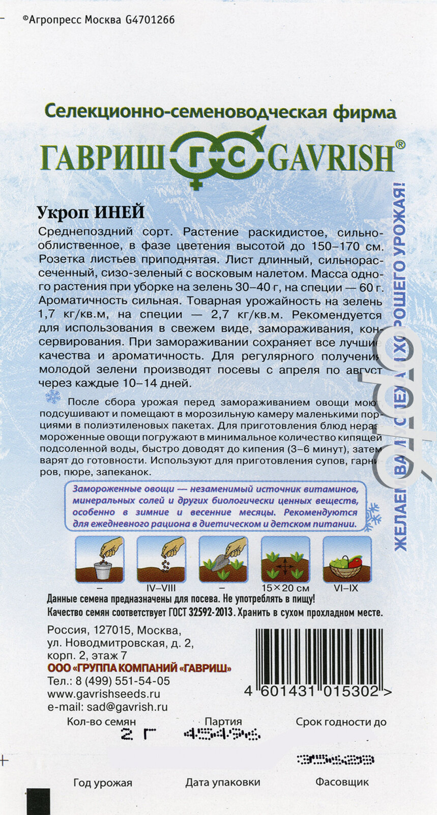 Гавриш Укроп Иней 2,0 г серия Заморозь 005214