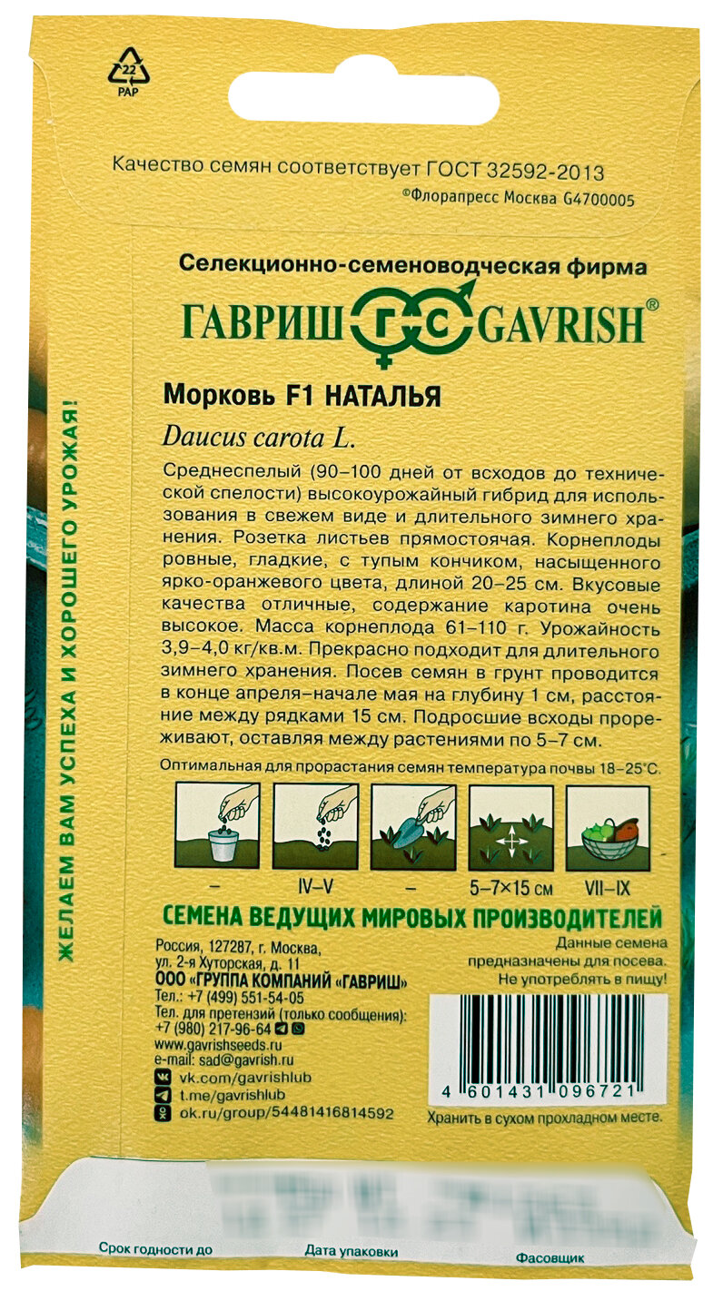 Ниже Вы можете прочитать отзывы на Семена Морковь Наталья F1 150 шт (Гавриш) Голландия, ознакомится с подробными характеристиками, посмотреть интересные обзоры и фотографии на Семена Морковь Наталья F1 150 шт (Гавриш) Голландия.
