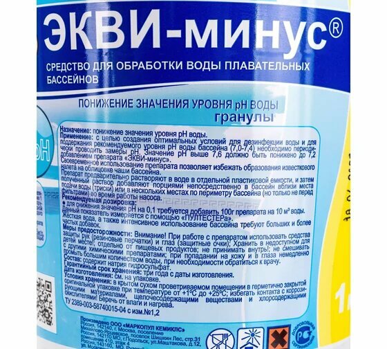 Химия для бассейнов Маркопул Кемиклс Экви-минус, понижение PH воды, 1кг (ХИМ09)