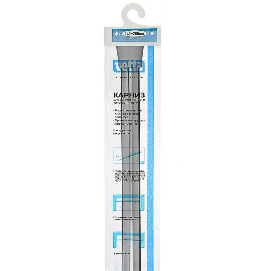Карниз для ванной комнаты телескопический Vetta, алюминий, 2,6м