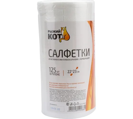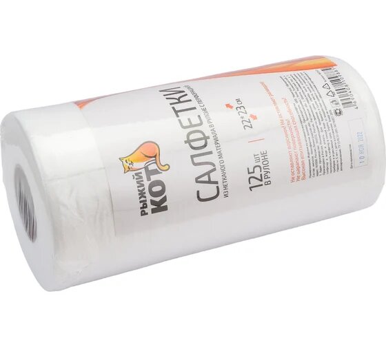 Салфетки из спанлейса в рулоне с перфорацией Рыжий кот, 22 x 23 см, 125 шт