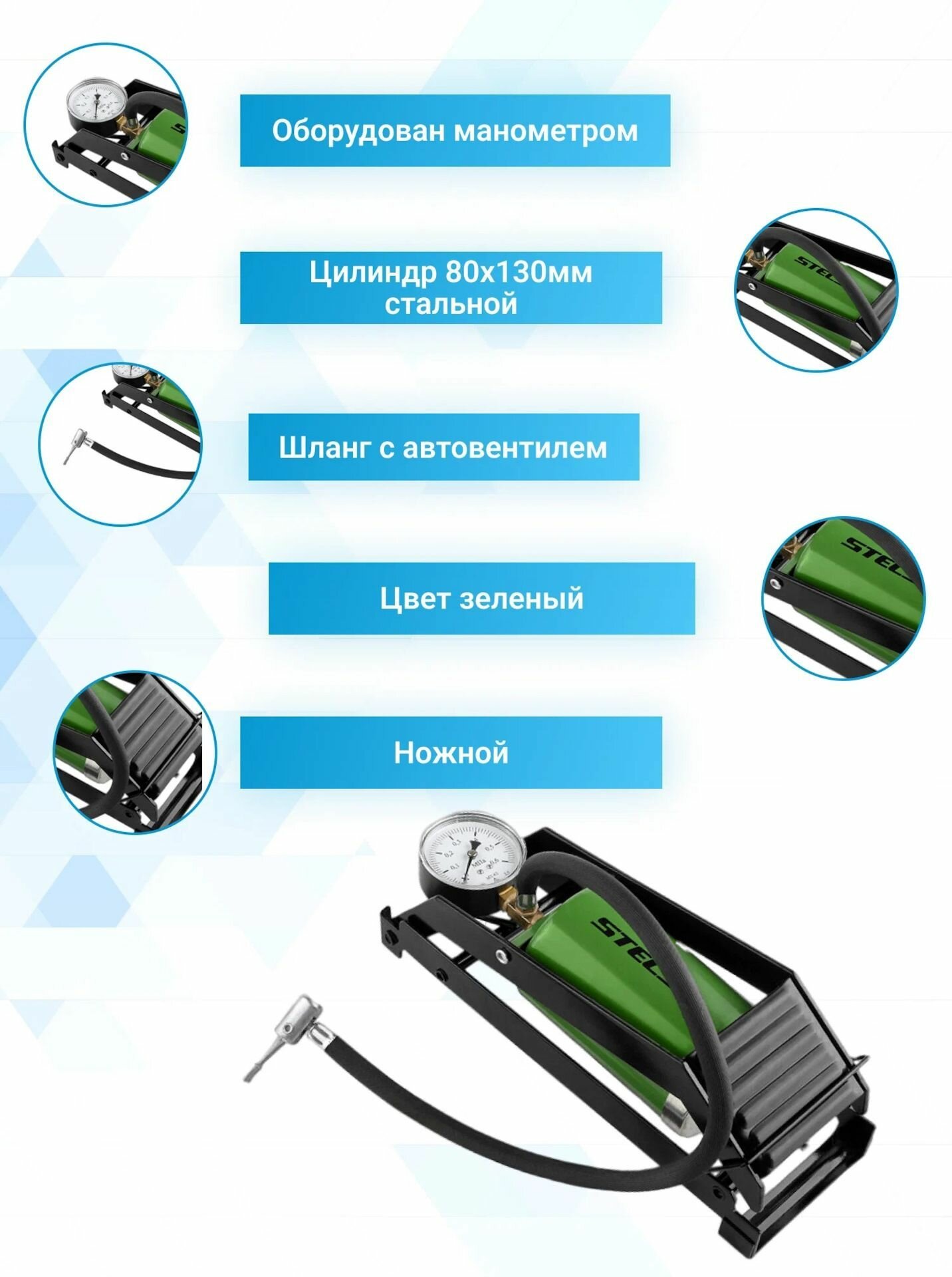 Насос ножной Stels FP9807B зелёный, цвет Зеленый
