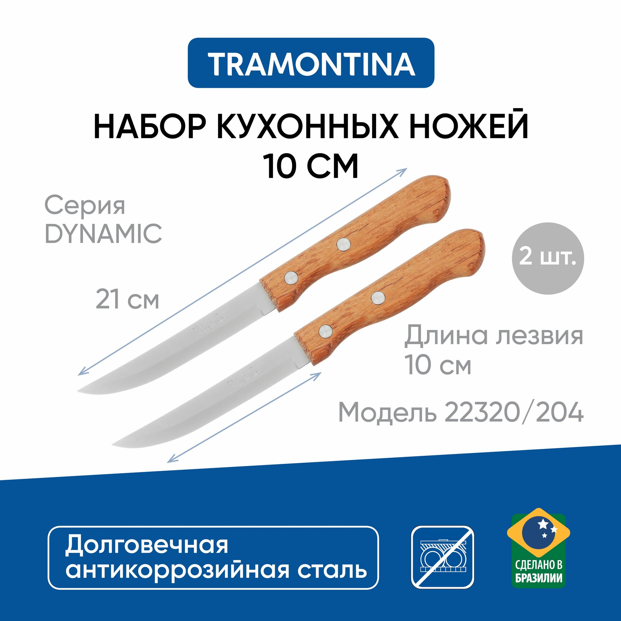 СохранитьНож кухонный 10 см, 2 штуки на блистере, Tramontina Dynamic, с гладким лезвием интересное: