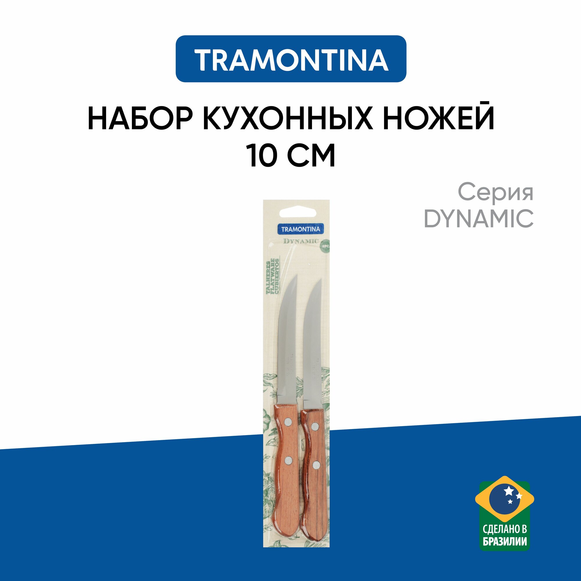 Купить Нож кухонный 10 см, 2 штуки на блистере, Tramontina Dynamic, с гладким лезвием