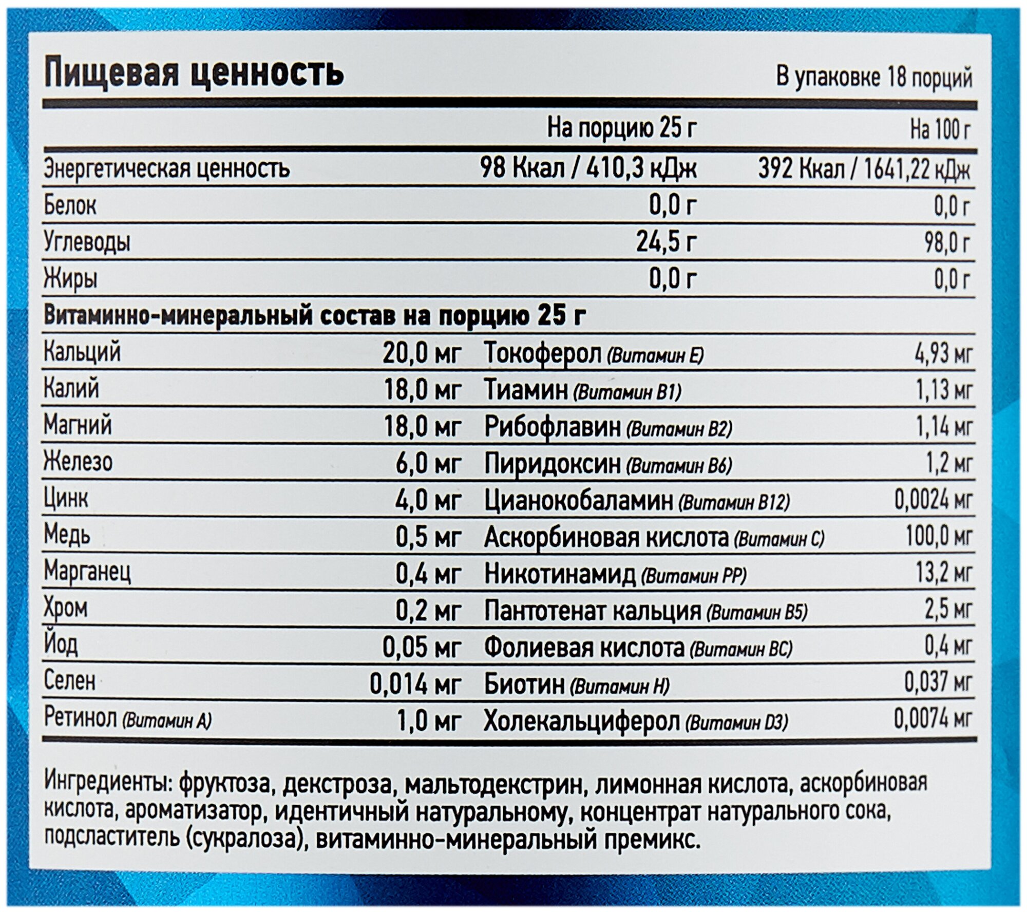 | Плюсы: | Не приторный, хорошо растворяется, качественные ингредиенты в составе |