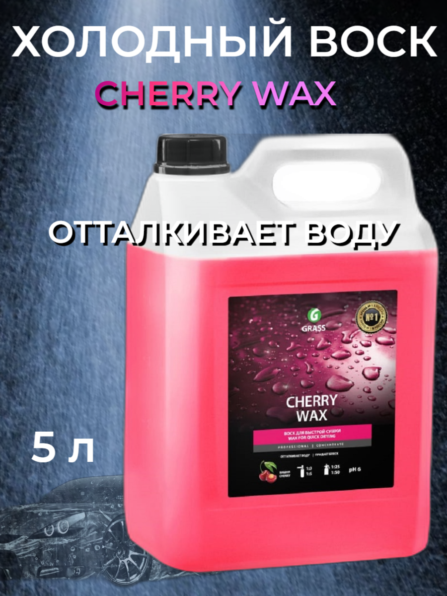 Воск для кузова 1л - холодный Cherry Wax: ускоряет высыхание и защищает кузов, безопасен для стекол, подходит для моек тоннельн/портального типа, концентрат 1:25-1:50 GRASS 138100 | цена за 1 шт