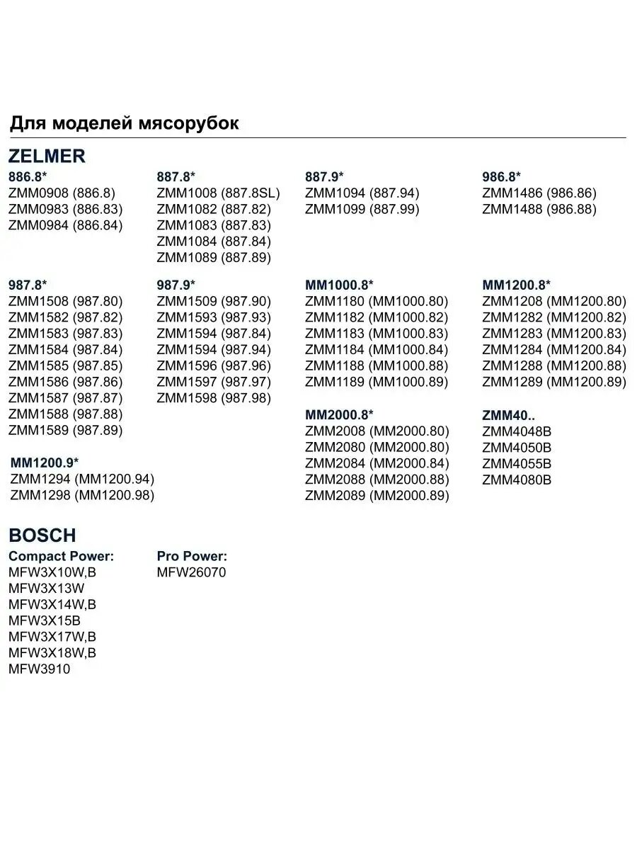 - Аксессуары для мясорубок, кухонных комбайнов, блендеров и миксеров