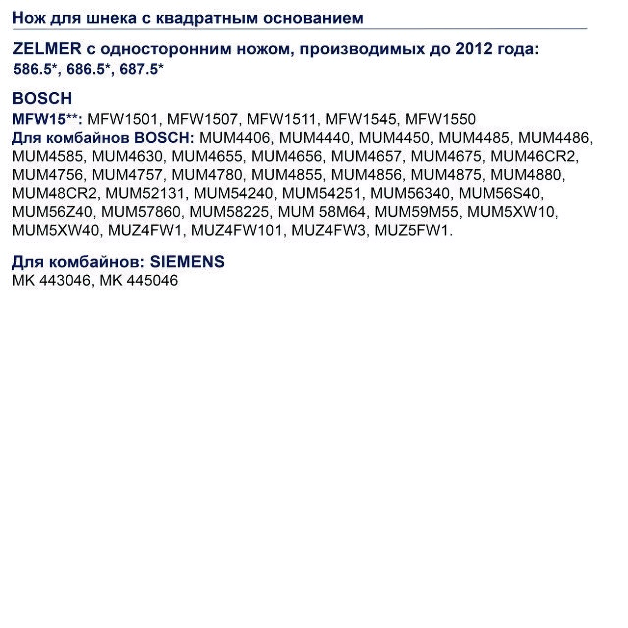 Нож для мясорубки Zelmer, Bosch, Siemens до 2012 года