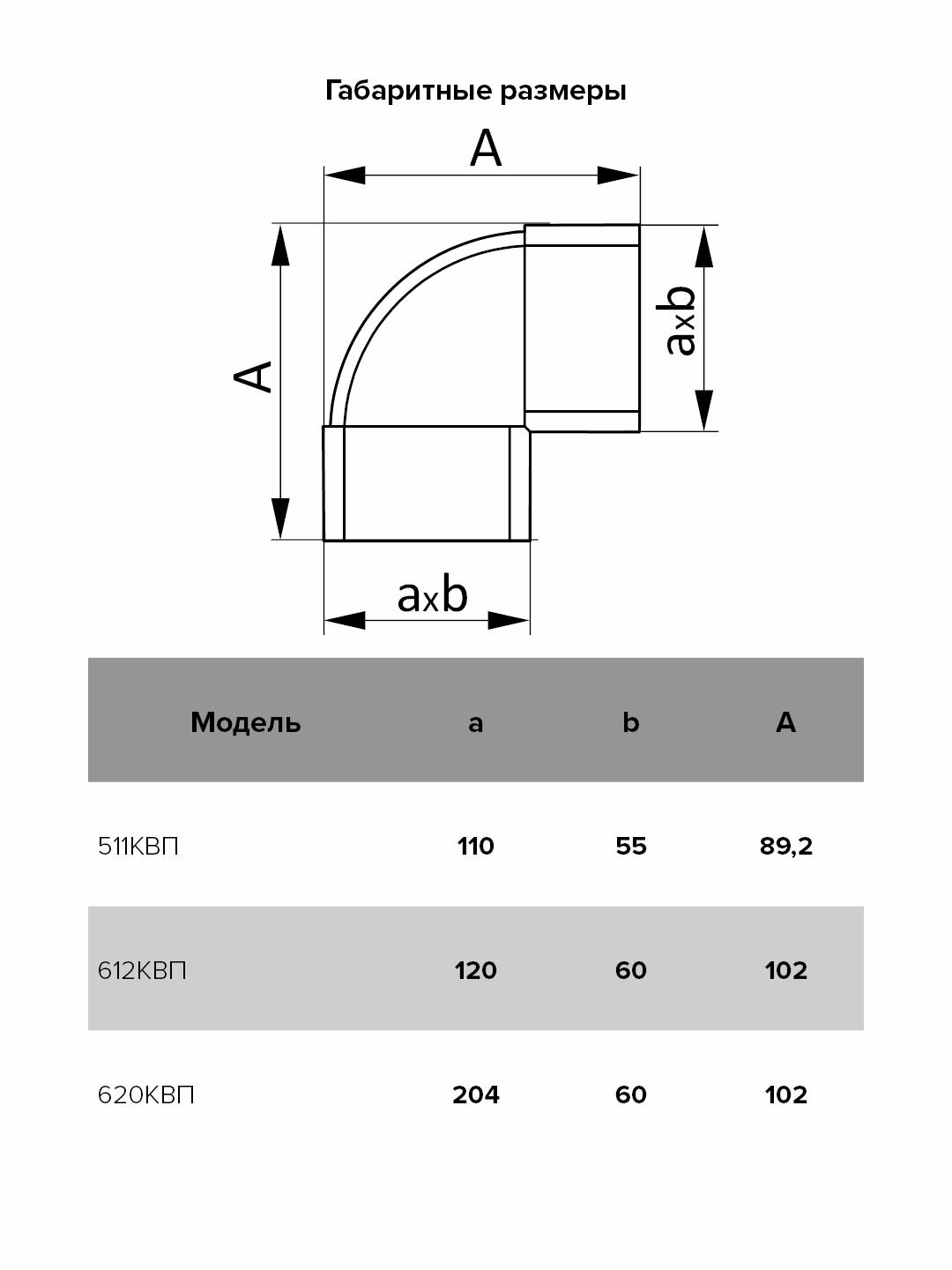 620КВПЗП Колено вертикальное для плоских каналов 60х204 мм