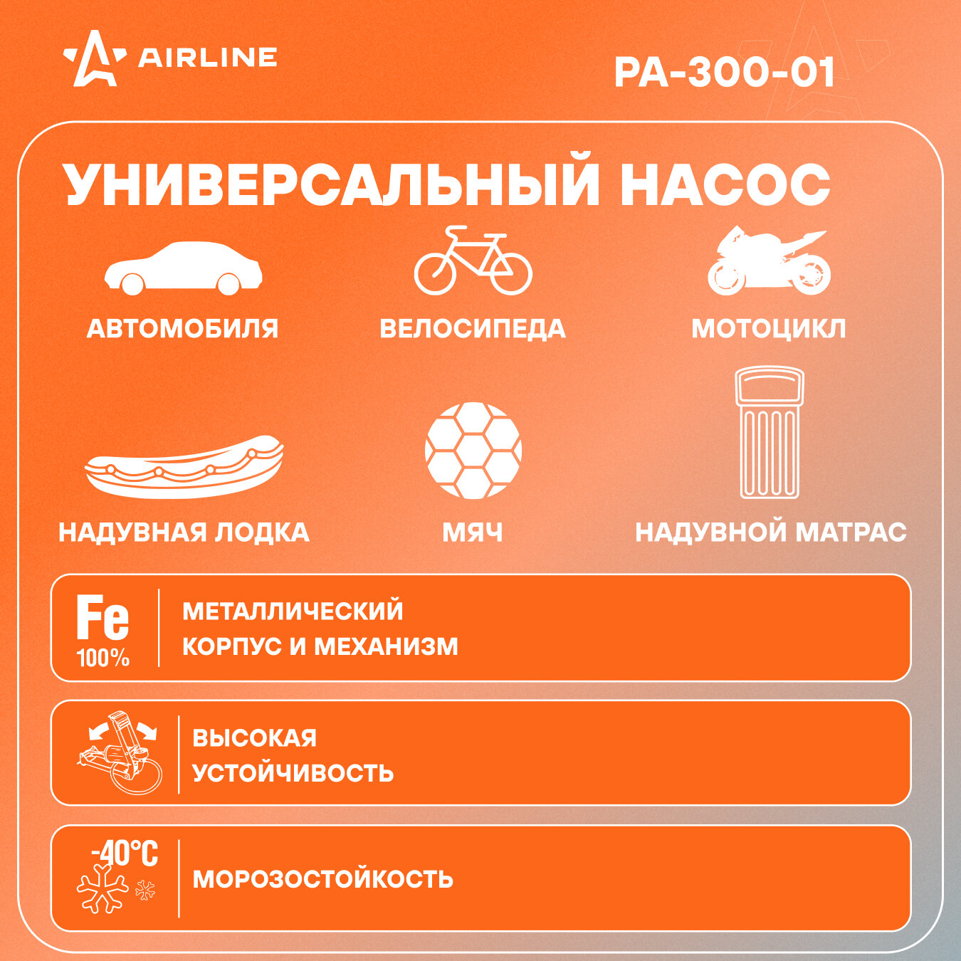 AIRLINE PA-300-01 PA-300-01 Насос воздушный 300 (ножной, механический, 320 см3) AIRLINE