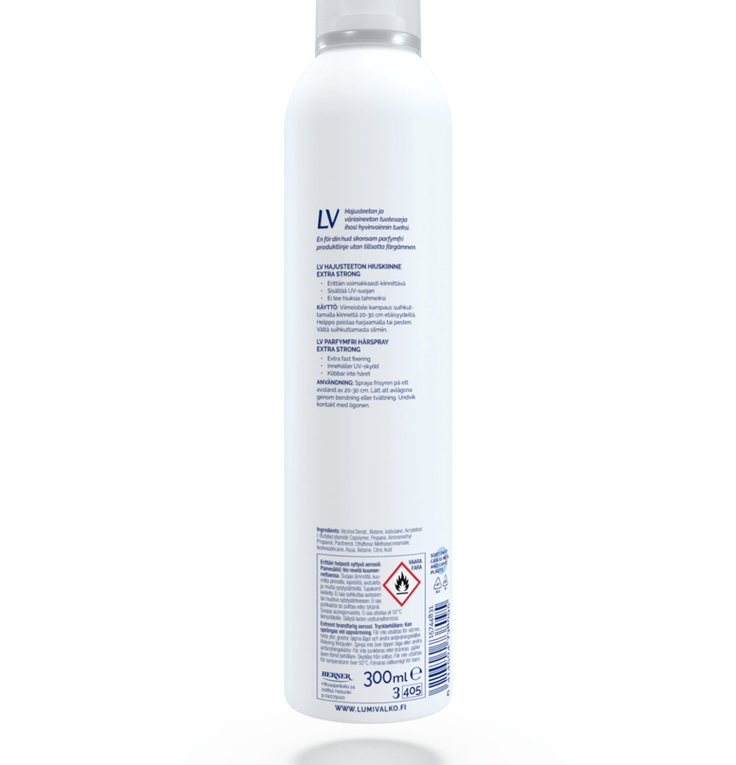 LV Лак для волос экстрасильной фиксации без отдушек, 300 мл (из Финляндии)