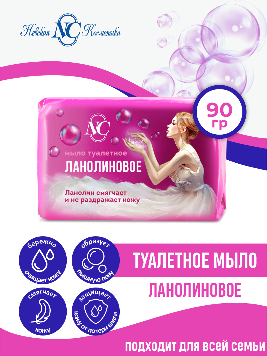 Мыло туалетное Невская Косметика Ланолиновое , 90 г