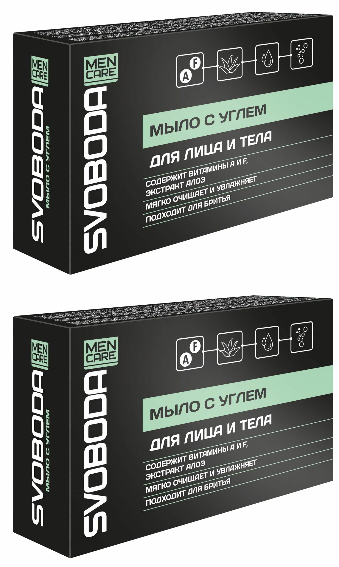 Мыло твердое свобода Svoboda Men Care, черное, с активированным углем и экстрактом алоэ, 100 г