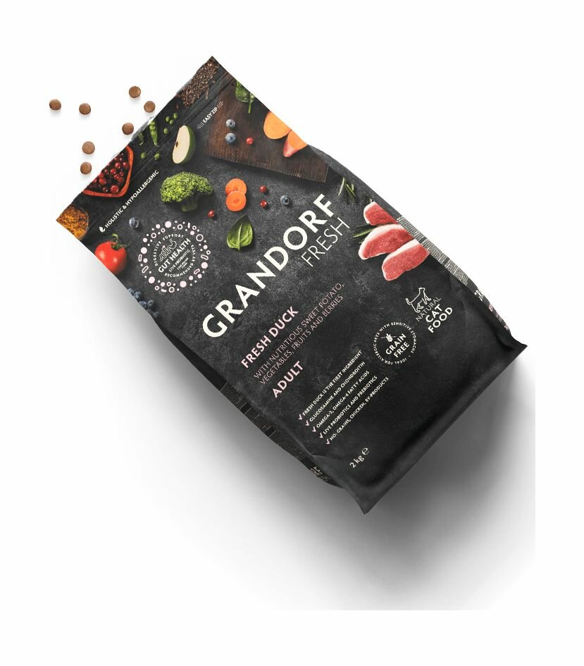 Сухой корм для кошек GRANDORF Fresh Cat ADULT Duck&Sweet Potato (Свежее мясо утки с бататом для кошек) 2 кг.