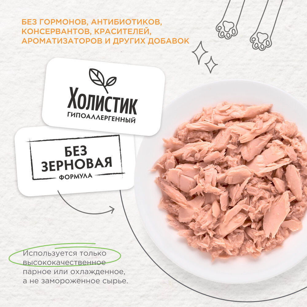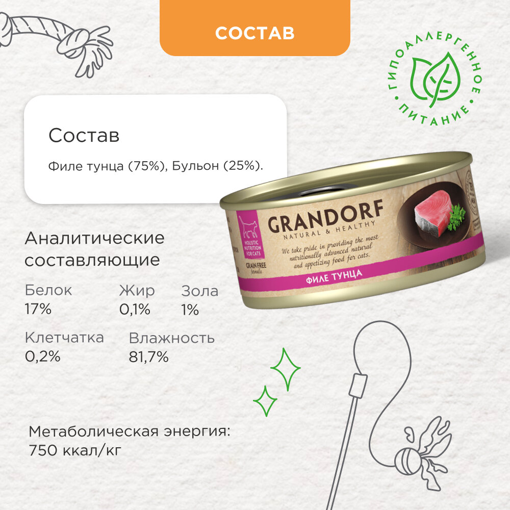 Grandorf Holistic Nutrition For Cat Grain Free влажные корма для котят и кошек холистик, филе тунца 6 банок х 70 гр
