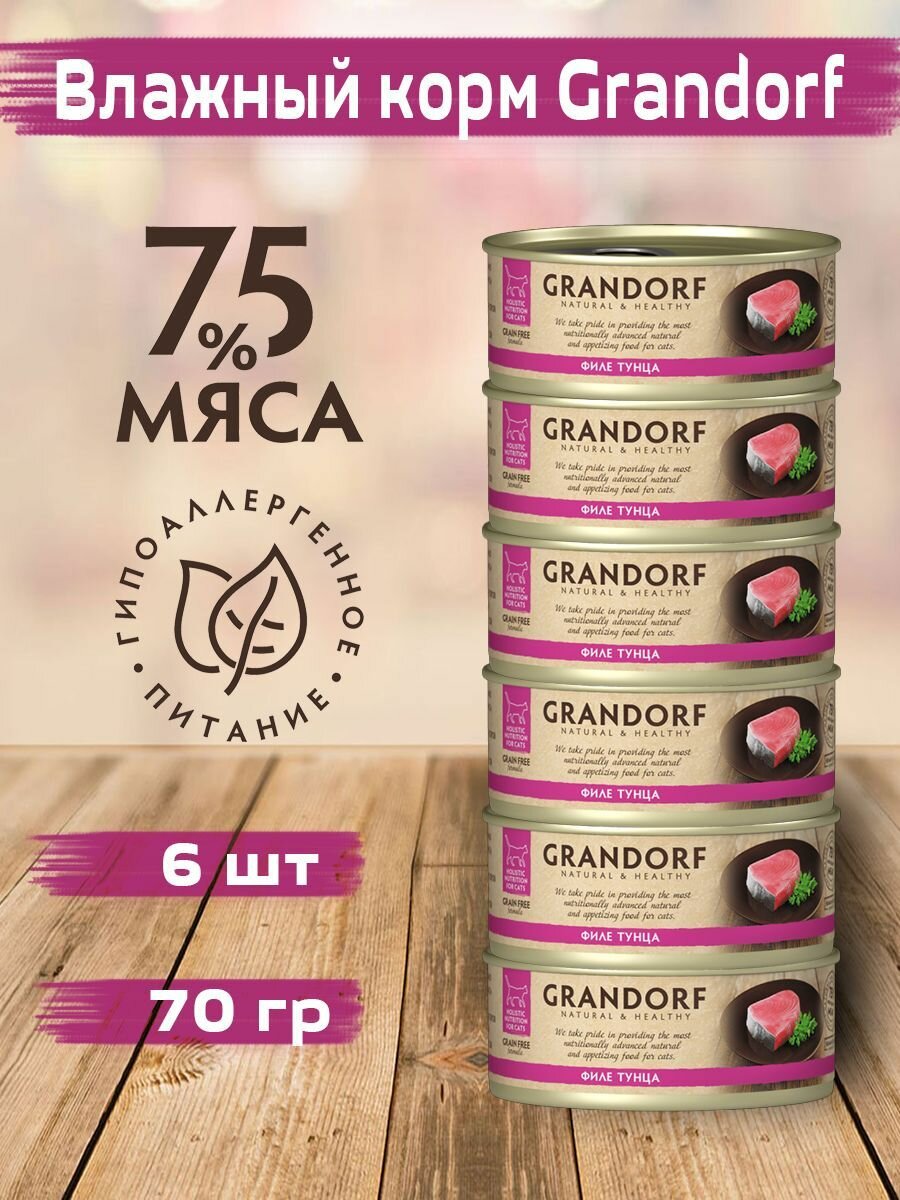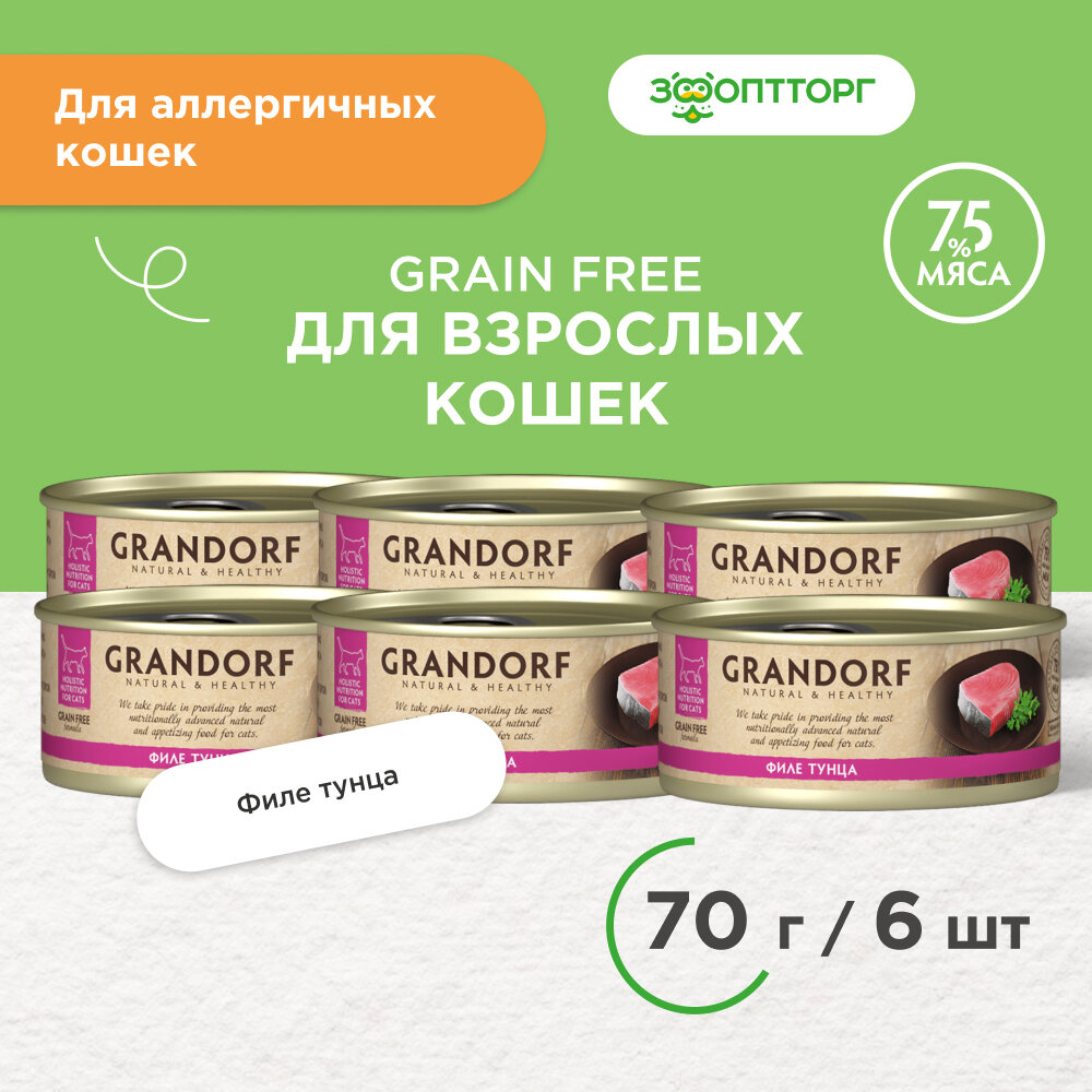 Купить Консервы для кошек GRANDORF Филе тунца 70 гр * 6 шт