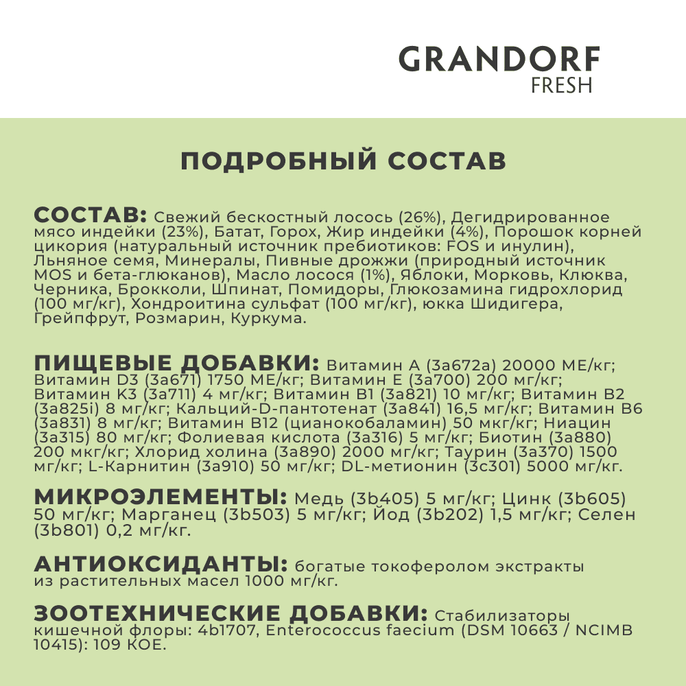Корм сухой Grandorf Fresh , беззерновой с живыми пробиотиками, свежее мясо индейки с бататом для кошек, 400 г