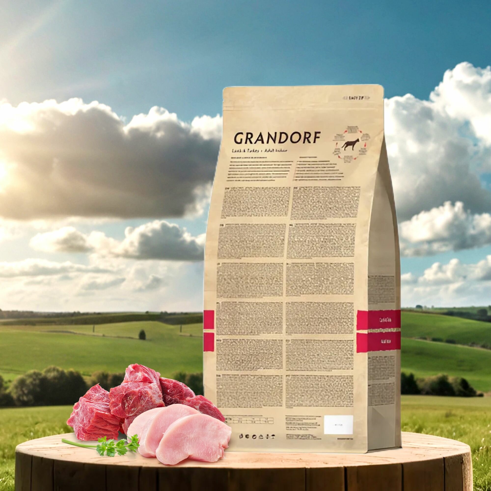 Grandorf Беззерновой корм с живыми пробиотиками: свежее мясо ягненка с бататом для кошек крупных пород, 2кг.