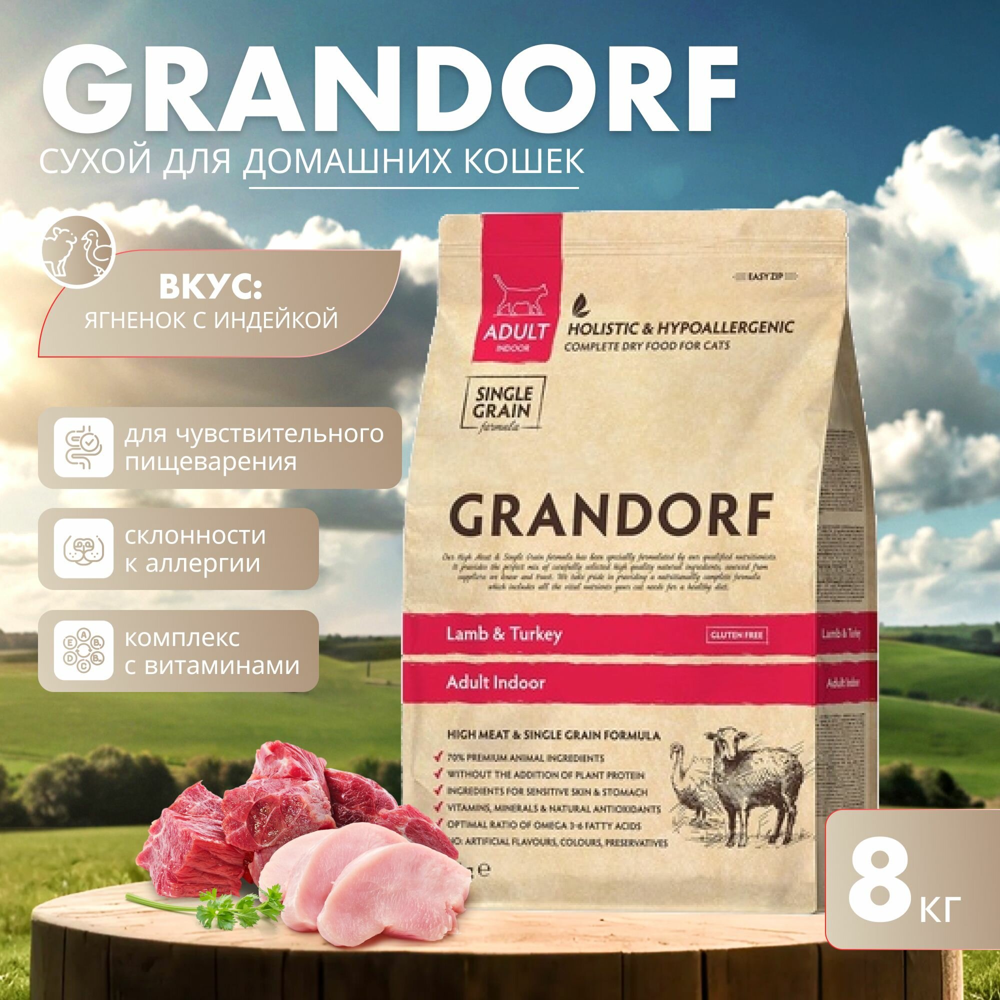 Корм для кошек сухой Grandorf для домашних кошек, с ягненком и индейкой, 2кг.