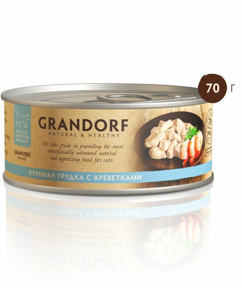 Корм для кошек GRANDORF Куриная грудка с креветками конс. 70г