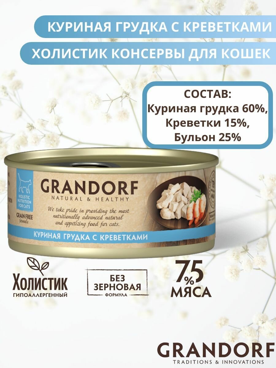 Грандорф (GRANDORF) консервы для кошек куриная грудка креветки 70гр 1 банка