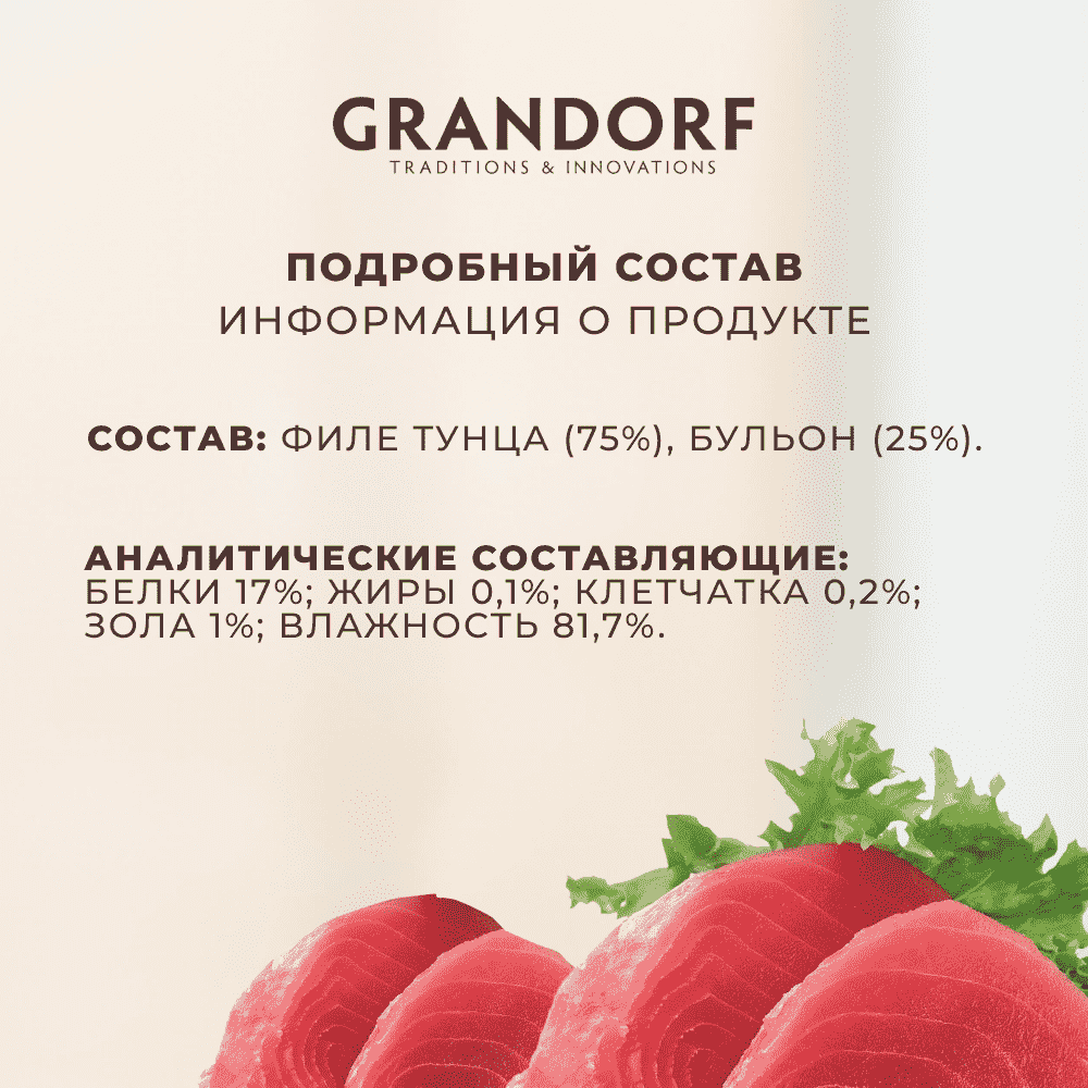 Корм Grandorf Tuna with Mussel in Broth, влажный, гипоаллергенный, для кошек, 70г, 6шт.