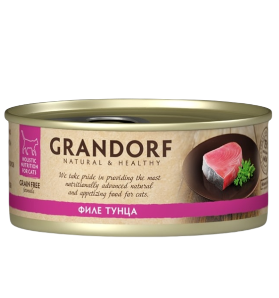 Консервы для кошек GRANDORF Филе тунца с лососем для всех возрастов 70 г