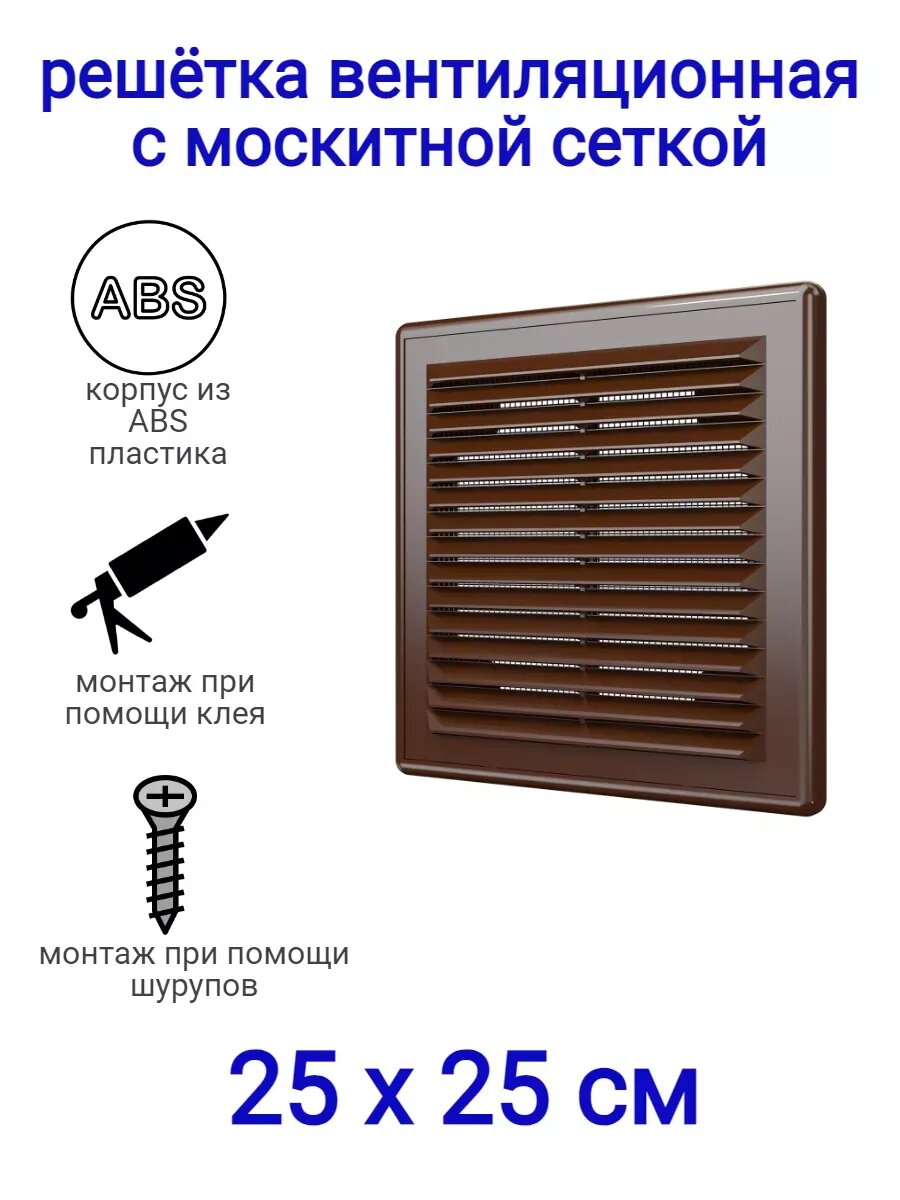 Решетка вентиляционная 250х250 пластик сетка 2525Р коричневый