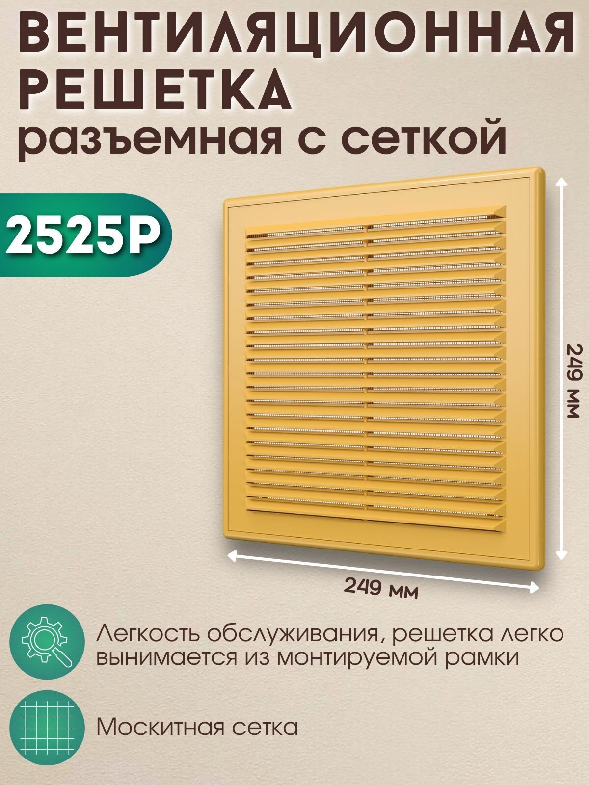СохранитьВентиляционная решетка 250х250 разъемная с сеткой 2525Р пластик бежевая интересное: