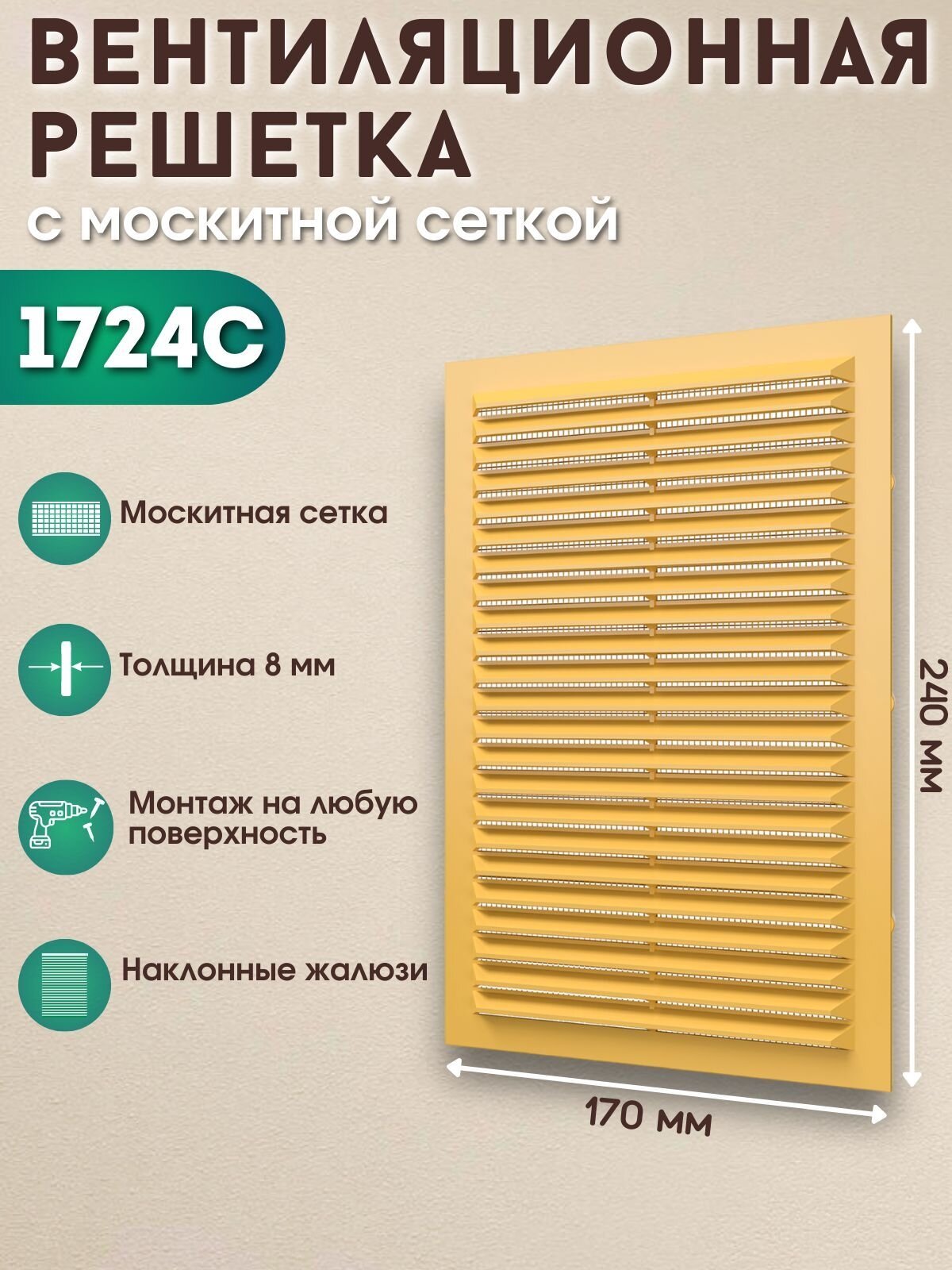 Решетка вентиляционная с москитной сеткой 170*240 беж 1724С