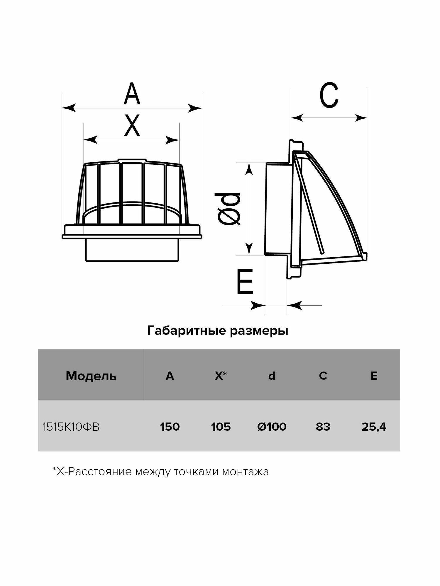 Выход стенной вытяжной с обратным клапаном ERA 1515К10ФВ 100мм белый