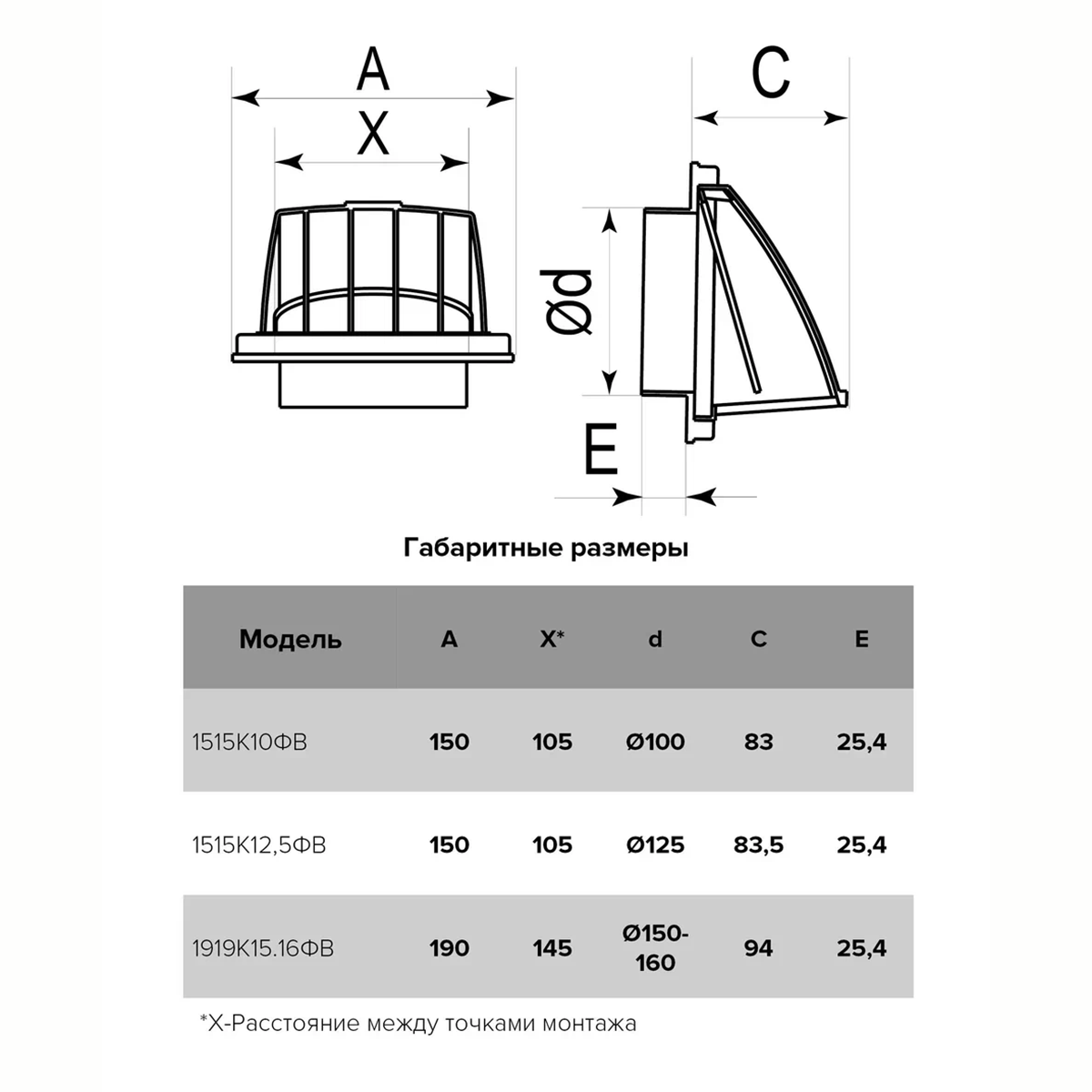 Выход стенной ЭРА 1515 К10ФВ вентиляционный с обратным клапаном серый