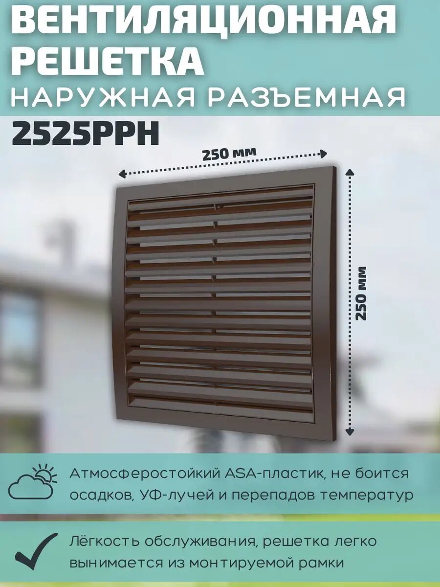 СохранитьВентиляционная решетка 250х250 наружная разъемная 2525РРН пластик коричневая интересное: