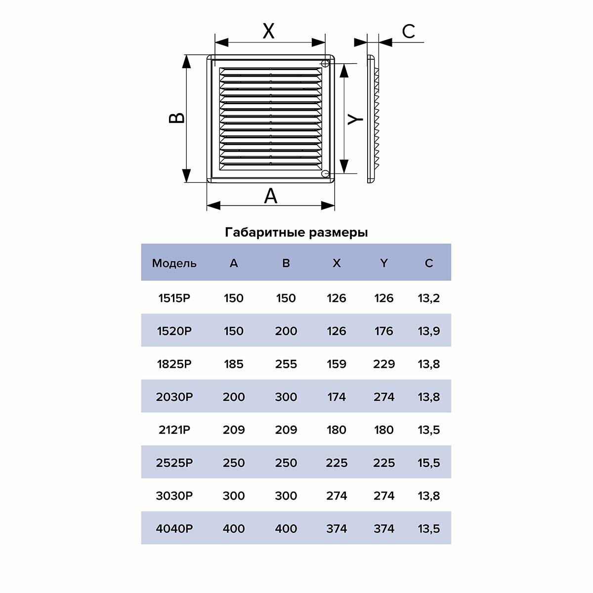 Вентиляционная решетка ERA 2121П 208 x 208 мм