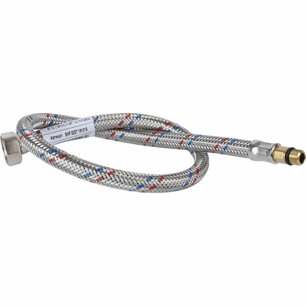 Купить Гибкая подводка для воды M 10 (18мм) х ВР 1/2, длина 600 мм Сантехническая нить 20 м