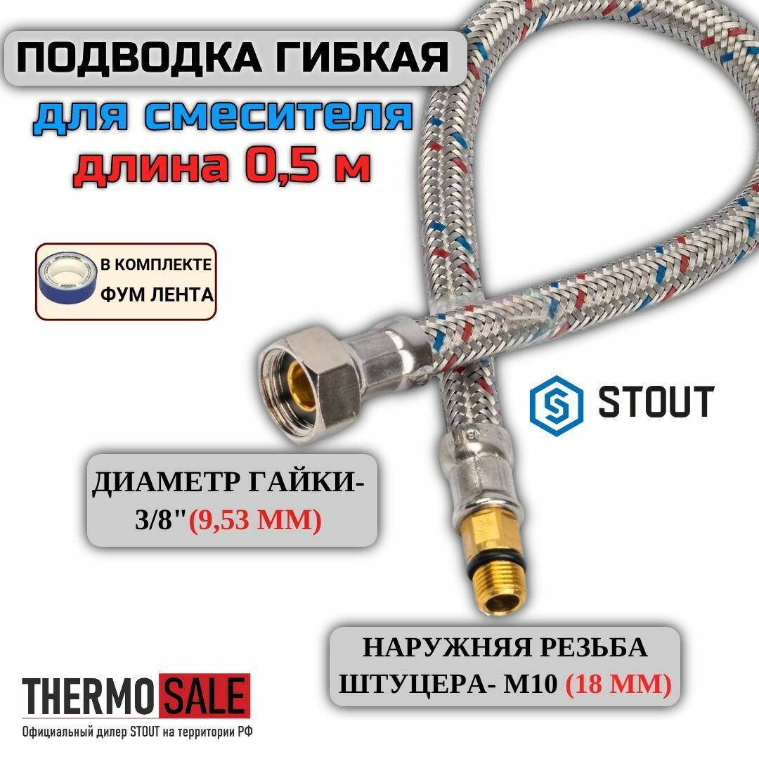 Stout Гибкая подводка для воды M 10 18мм х ВР 3/8 Rg008p0sif7u0t .