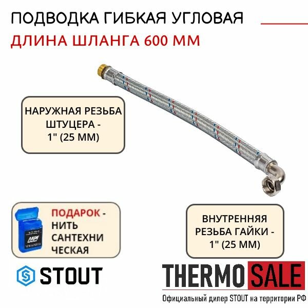 Гибкая подводка для воды STOUT НР 1 х ВР 1 угловая длина 600 мм