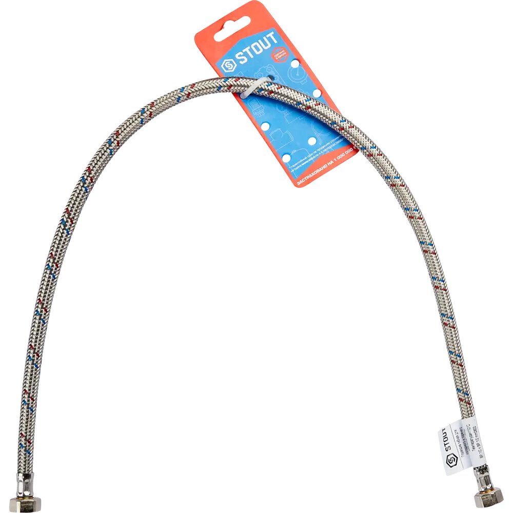 Гибкая подводка для воды Stout ВР 1/2 х ВР 1/2, длина 1000 мм