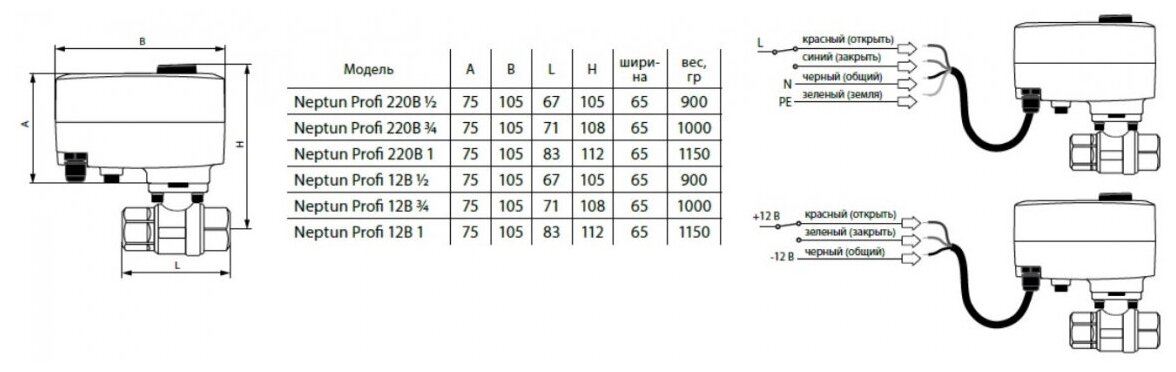 Купить Кран шаровой с электроприводом Neptun PROFI 12В 1/2