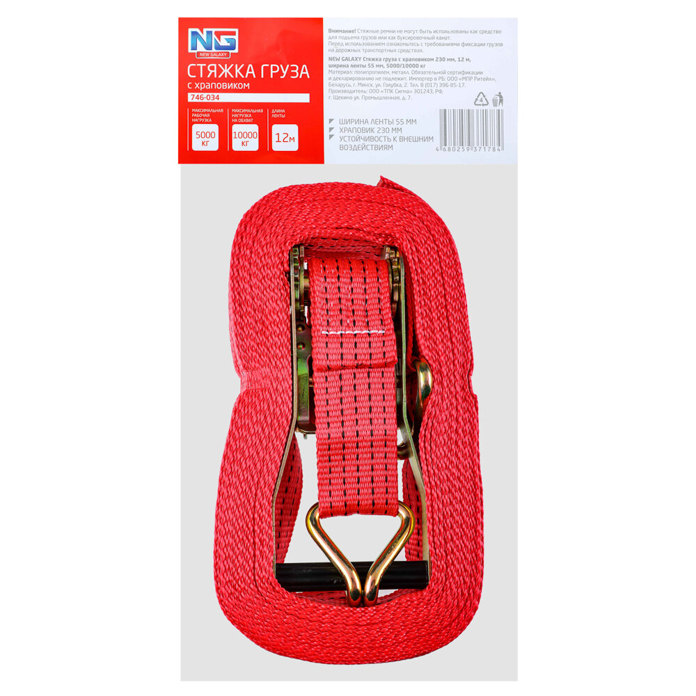 NEW GALAXY Стяжка груза с храповиком 230мм, 12м, шир.ленты 55мм, 5000/10000кг