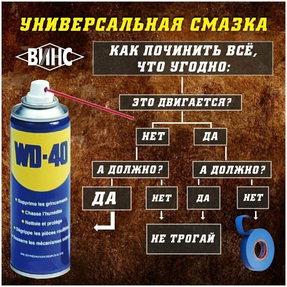 Лучшая универсальная смазка. Классика жанра. Всегда есть в запасе. |