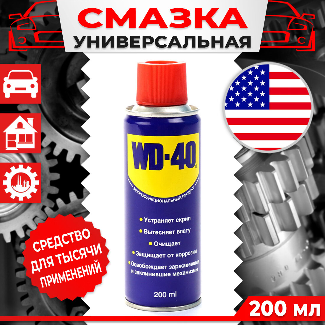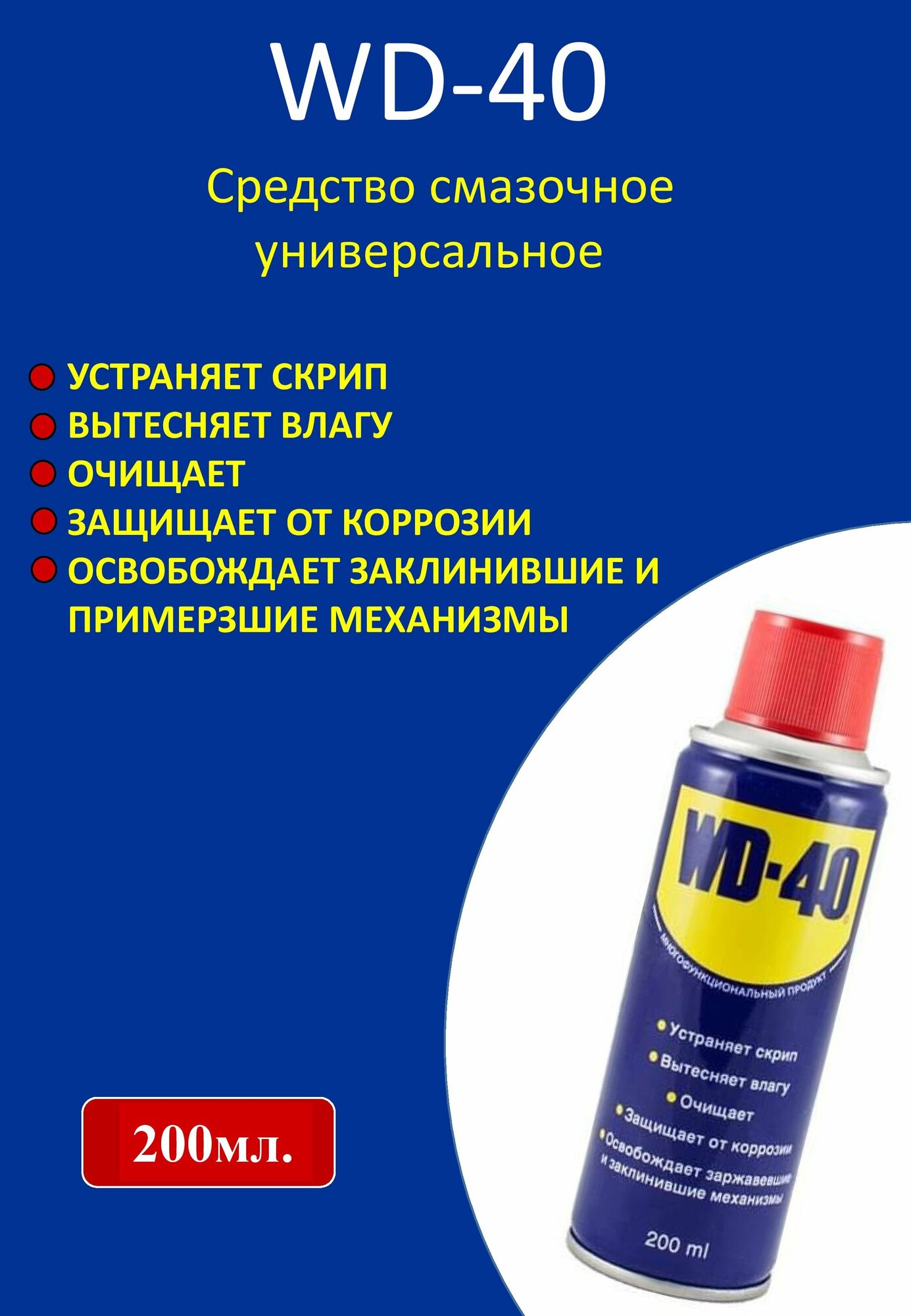 Средство WD-40 универсальное, 200 мл, для тысячи применений в офисе, быту, производстве, WD0001, 602757