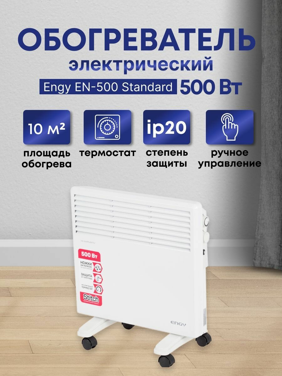 Engy Обогреватель ENGY EN-500 Standard, конвекторный, 500 Вт, 10 м², Stitch, белый