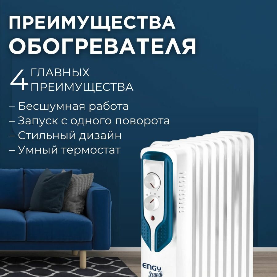 Радиатор масляный 2000 Вт 9 секций, термостат, обогрев 30 кв.м 015038, Engy EN-1309 Classic