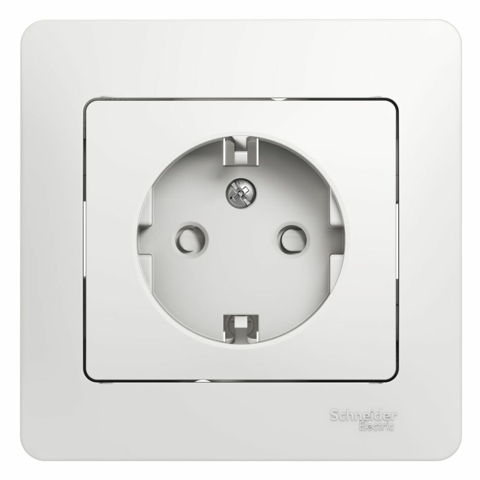 Купить Розетка Systeme Electric Glossa с заземлением, со шторками, в сборе с рамкой, цвет Белый (комплект 10шт)