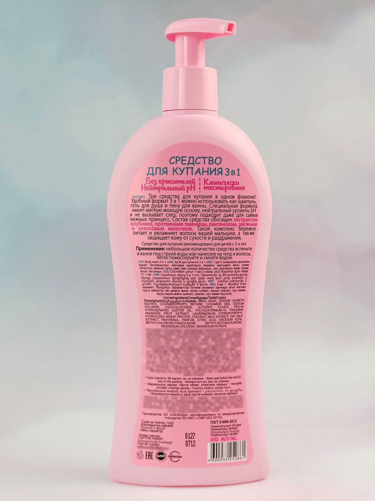Свобода Средство для купания детское, Алиса, 3 в 1 с экстрактом клубники и молочком кокоса 350 мл /