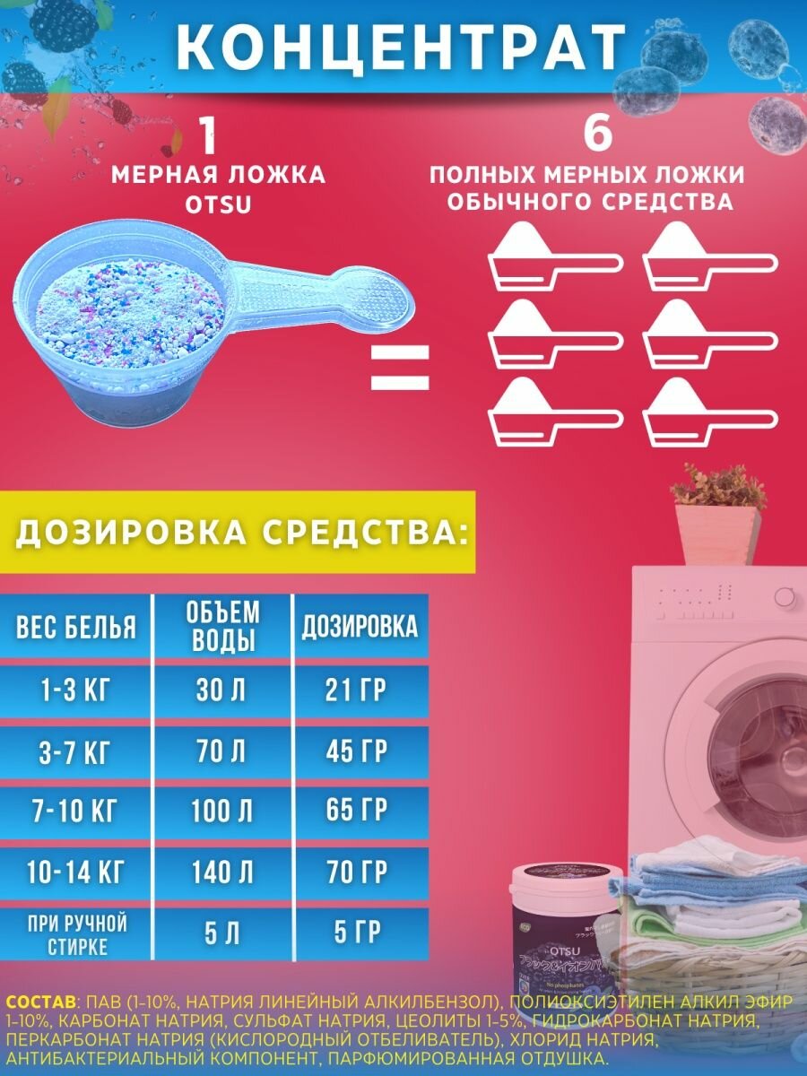 OTSU Концентрированный стиральный порошок с ароматом "цветочный САД" 1 кг/16