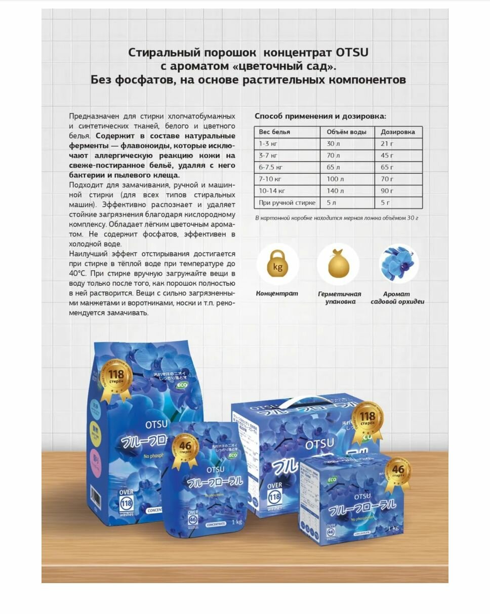 OTSU Концентрированный стиральный порошок с ароматом "цветочный САД" 1 кг/16