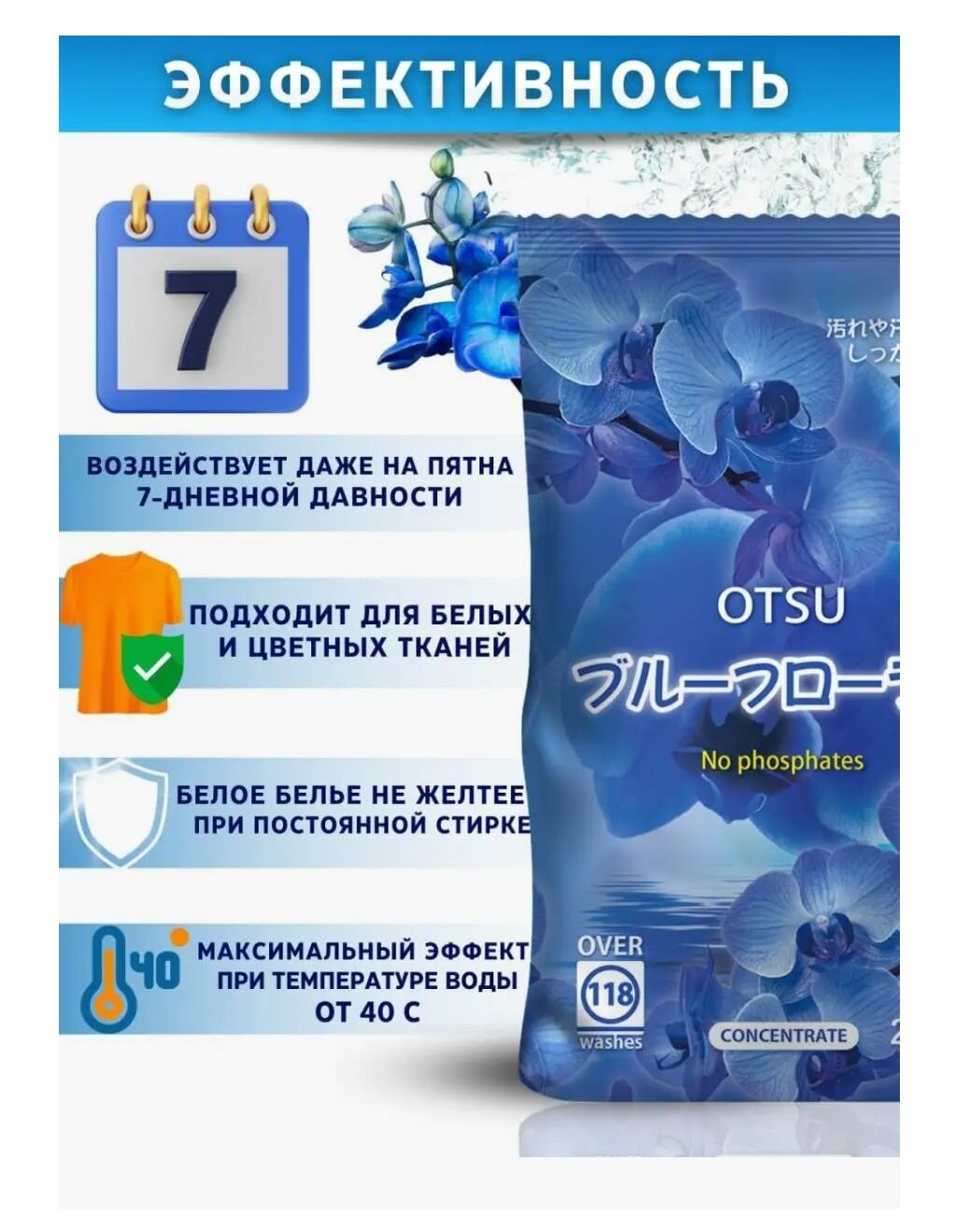 Купить Стиральный порошок Otsu, без фосфатов, с ароматом голубых орхидей, 2,5 кг