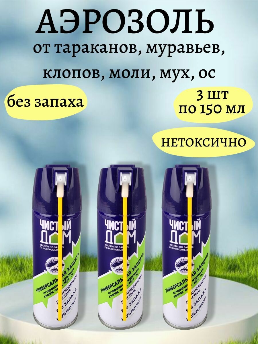 Аэрозоль "Чистый дом" от насекомых, универсальный 3 штуки по 600 мл